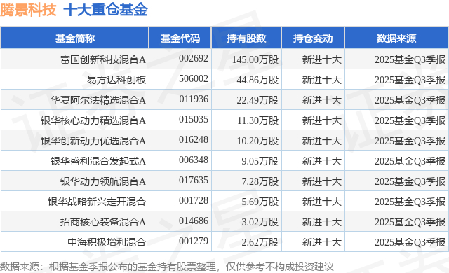 根据2025基金Q3季报公募基金重仓股数据,重仓该股的公募基金共13家,其中持有数量最多的公募基金为富国基金的富国创新科技混合A。富国创新科技混合A目前规模为37.81亿元,最新净值2.789(12月8日),较上一交易日上涨7.06%,近一年上涨119.26%。该公募基金现任基金经理为罗擎。