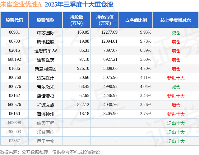 根据2025基金Q3季报公募基金重仓股数据,重仓该股的公募基金共4家,其中持有数量最多的公募基金为朱雀基金的朱雀企业优胜A。朱雀企业优胜A目前规模为6.67亿元,最新净值1.4789(12月8日),较上一交易日上涨0.26%,近一年上涨19.63%。该公募基金现任基金经理为陈飞。陈飞在任的基金产品包括:朱雀匠心一年持有,管理时间为2025年1月13日至今,期间收益率为18.16%;朱雀产业精选混合A,管理时间为2025年5月26日至今,期间收益率为9.25%;朱雀企业优选A,管理时间为2025年9月11日至今,期间收益率为-4.92%。