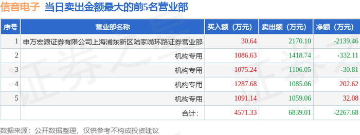 证券之星消息,沪深交易所2025年12月9日公布的交易公开信息显示,信音电子(301329)因日换手率达到30%的前5只证券登上龙虎榜。此次是近5个交易日内第1次上榜。