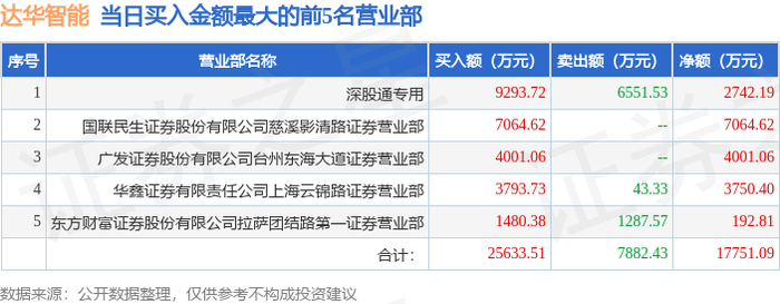证券之星消息,沪深交易所2025年12月9日公布的交易公开信息显示,达华智能(002512)因日涨幅偏离值达到7%的前5只证券登上龙虎榜。此次是近5个交易日内第3次上榜。