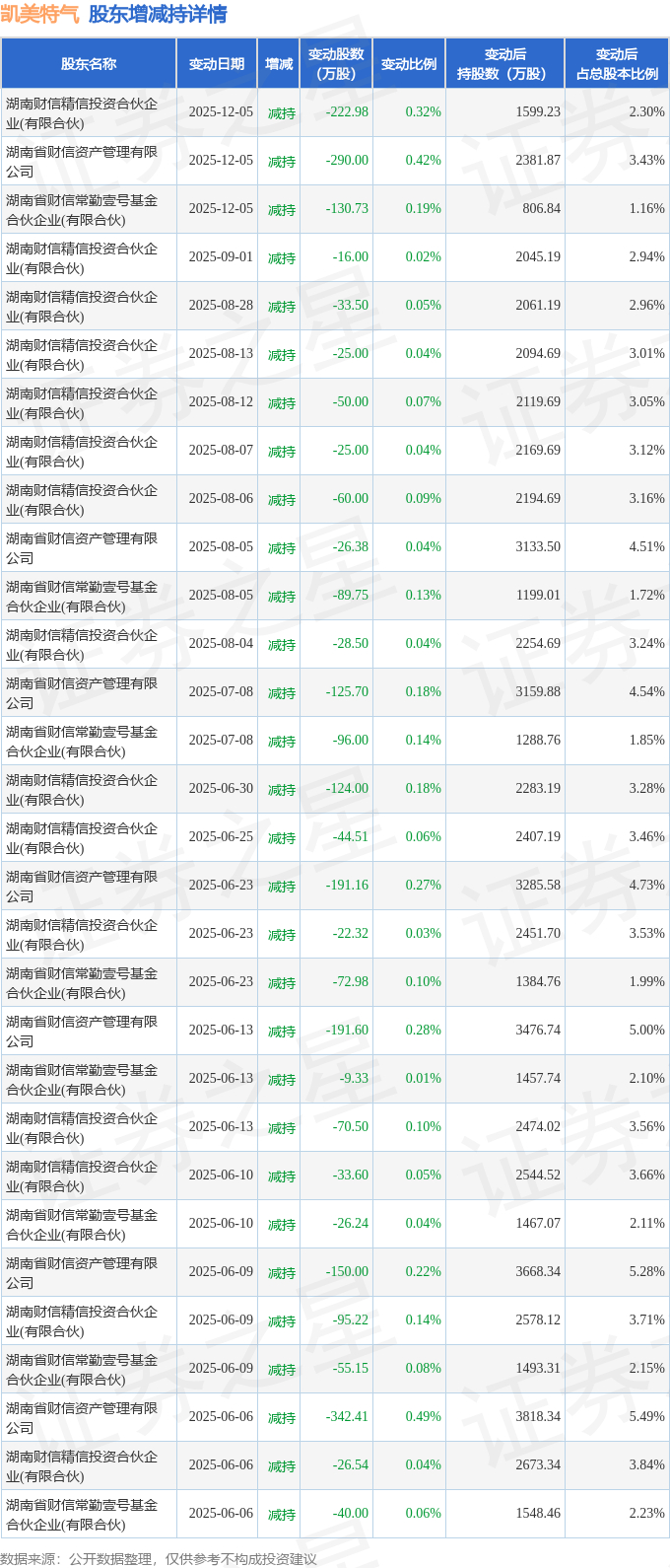 该股近半年内有股东持股变动,合计净减持2715.1万股,股东增减持明细如下表: