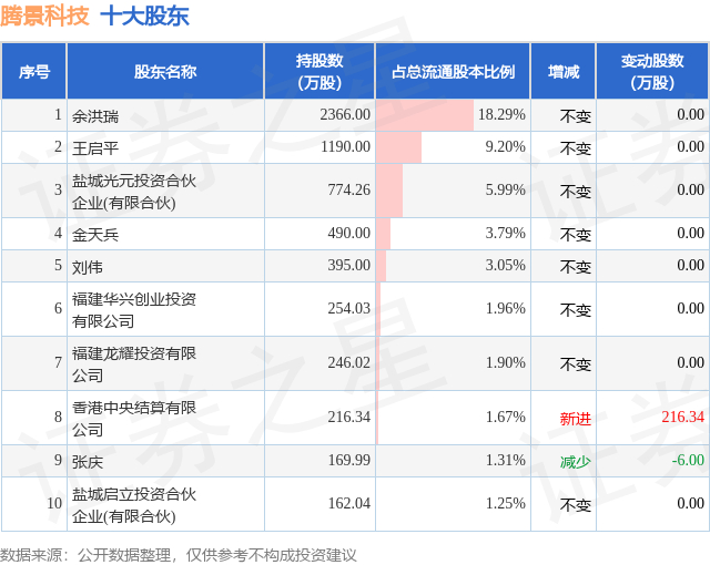 根据腾景科技2025年三季报公布的十大股东详情如下: