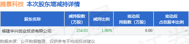证券之星消息,12月9日腾景科技发布公告《腾景科技:腾景科技股东减持股份结果公告》,其股东福建华兴创业投资有限公司于2025年12月9日合计减持254.03万股,占公司目前总股本的1.9639%,变动期间该股股价上涨10.54%,截止12月9日收盘报191.9元。