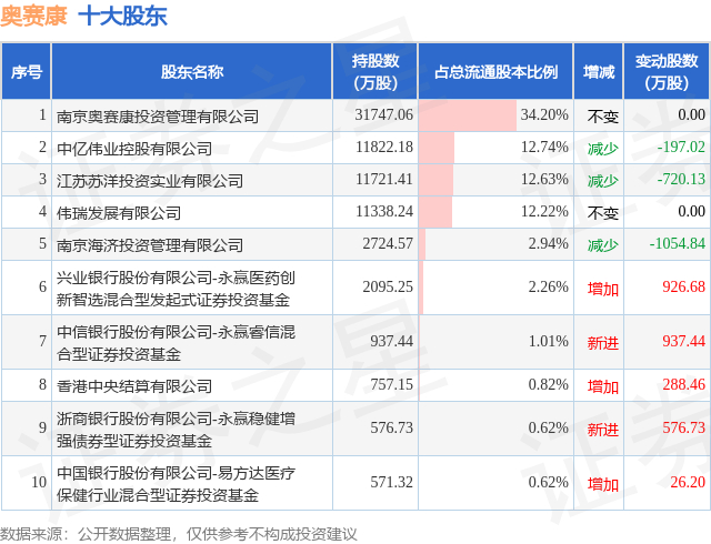 根据奥赛康2025年三季报公布的十大股东详情如下: