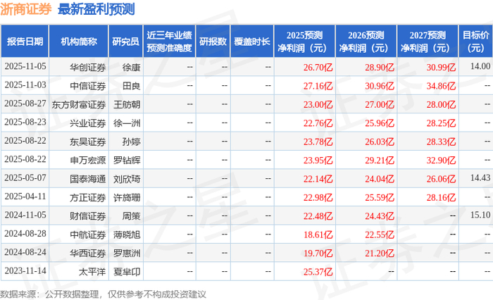 浙商证券2025年三季报显示,前三季度公司主营收入67.89亿元,同比上升66.73%;归母净利润18.92亿元,同比上升49.57%;扣非净利润18.67亿元,同比上升49.75%;其中2025年第三季度,公司单季度主营收入6.82亿元,同比上升117.35%;单季度归母净利润7.43亿元,同比上升54.61%;单季度扣非净利润7.34亿元,同比上升56.3%;负债率78.55%,投资收益24.42亿元。