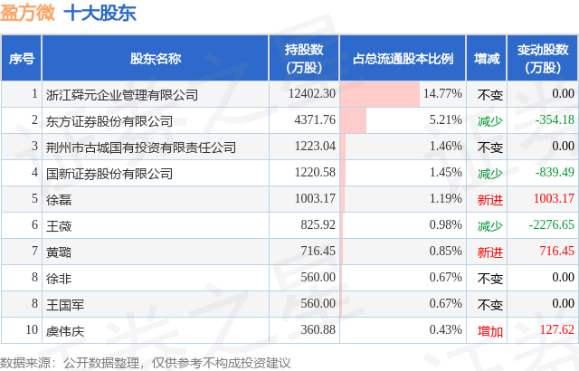 根据盈方微2025年三季报公布的十大股东详情如下: