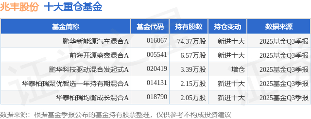 根据2025基金Q3季报公募基金重仓股数据,重仓该股的公募基金共5家,其中持有数量最多的公募基金为鹏华基金的鹏华新能源汽车混合A。鹏华新能源汽车混合A目前规模为15.26亿元,最新净值1.2086(12月9日),较上一交易日下跌1.27%,近一年上涨58.32%。该公募基金现任基金经理为闫思倩。闫思倩在任的基金产品包括:鹏华沪深港新兴成长混合A,管理时间为2022年5月7日至今,期间收益率为51.82%;鹏华碳中和主题混合A,管理时间为2023年5月5日至今,期间收益率为91.1%;鹏华科技驱动混合发起式A,管理时间为2024年8月29日至今,期间收益率为44.15%。