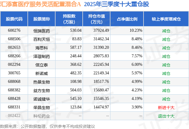 汇添富医疗服务灵活配置混合A的前十大重仓股如下: