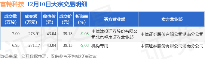 证券之星消息,12月10日富特科技发生大宗交易,交易数据如下: