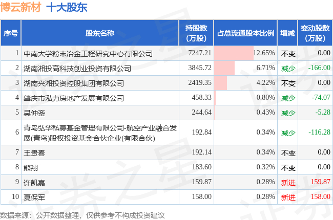 根据博云新材2025年三季报公布的十大股东详情如下: