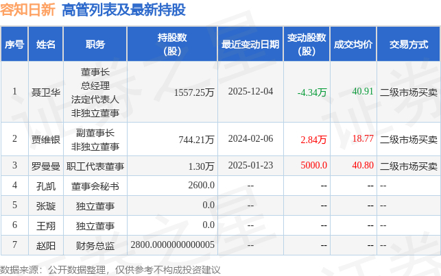 容知日新近半年内的董监高及核心技术人员增减持详情如下: