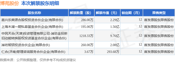 本次解禁涉及股东明细见下表: