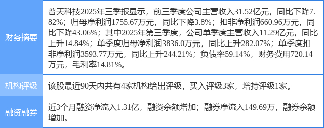 2025年10月28日,中国银河研究员赵良毕,刘璐发布了对普天科技的研报《普天科技公司首次覆盖报告:专网与智造筑基,空天算力打开新纪元》,该研报对普天科技给出“买入”评级。研报中预计公司2025-2027年整体营业收入分别为49.81/66.04/74.74亿元,同比增速0.16%/32.60%/13.18%,归母净利润分别为0.51/1.98/2.57亿元,同比增速353.60%/290.38%/29.55%,EPS分别为0.07/0.29/0.38元,对应市盈率分别为323.33/82.82/63.93倍。考虑公司未来太空算力卡位,首次覆盖,给予普天科技“推荐”评级。证券之星数据中心根据近三年发布的研报数据计算,该研报作者对此股的盈利预测准确度为19.48%。