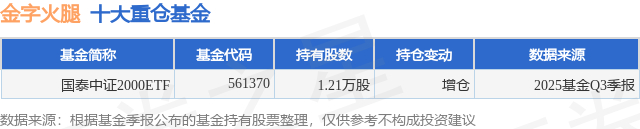 根据2025基金Q3季报公募基金重仓股数据,重仓该股的公募基金共1家,其中持有数量最多的公募基金为国泰基金的国泰中证2000ETF。国泰中证2000ETF目前规模为0.32亿元,最新净值1.3687(12月10日),较上一交易日上涨0.1%,近一年上涨23.64%。该公募基金现任基金经理为麻绎文 刘昉元。麻绎文在任的基金产品包括:国泰中证有色金属ETF,管理时间为2023年8月8日至今,期间收益率为62.28%;国泰中证有色金属矿业主题ETF,管理时间为2023年8月8日至今,期间收益率为66.96%;国泰中证全指集成电路ETF,管理时间为2023年10月11日至今,期间收益率为80.91%。刘昉元在任的基金产品包括:国泰上证科创板综合ETF,管理时间为2025年4月11日至今,期间收益率为46.35%;国泰中证A500增强策略ETF,管理时间为2025年5月21日至今,期间收益率为19.52%;国泰上证科创板芯片ETF发起联接A,管理时间为2025年9月1日至今,期间收益率为6.52%。