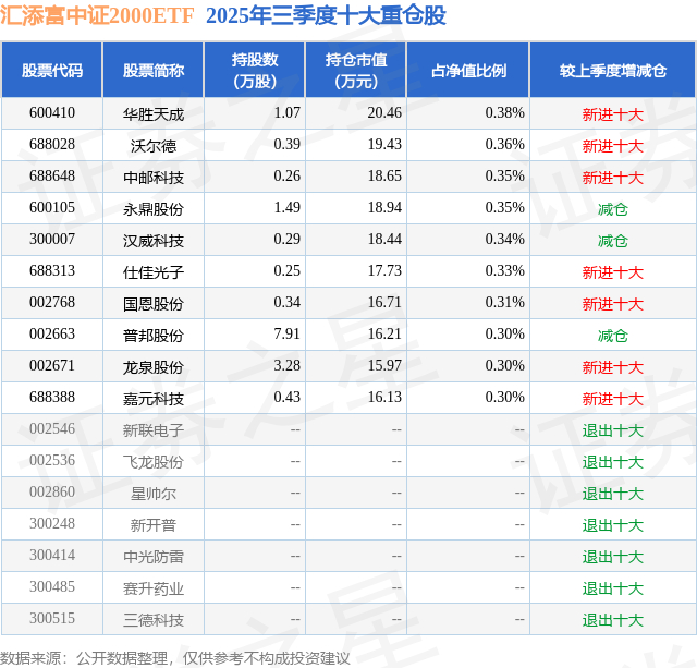 汇添富中证2000ETF的前十大重仓股如下: