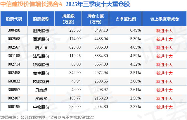 根据2025基金Q3季报公募基金重仓股数据,重仓该股的公募基金共5家,其中持有数量最多的公募基金为中信建投基金的中信建投价值增长混合A。中信建投价值增长混合A目前规模为7.34亿元,最新净值1.167(12月10日),较上一交易日上涨0.14%。该公募基金现任基金经理为冷文鹏。冷文鹏在任的基金产品包括:中信建投北交所精选两年定开混合A,管理时间为2024年7月16日至今,期间收益率为221.45%;中信建投科技主题6个月持有混合A,管理时间为2025年10月13日至今,期间收益率为-9.46%。