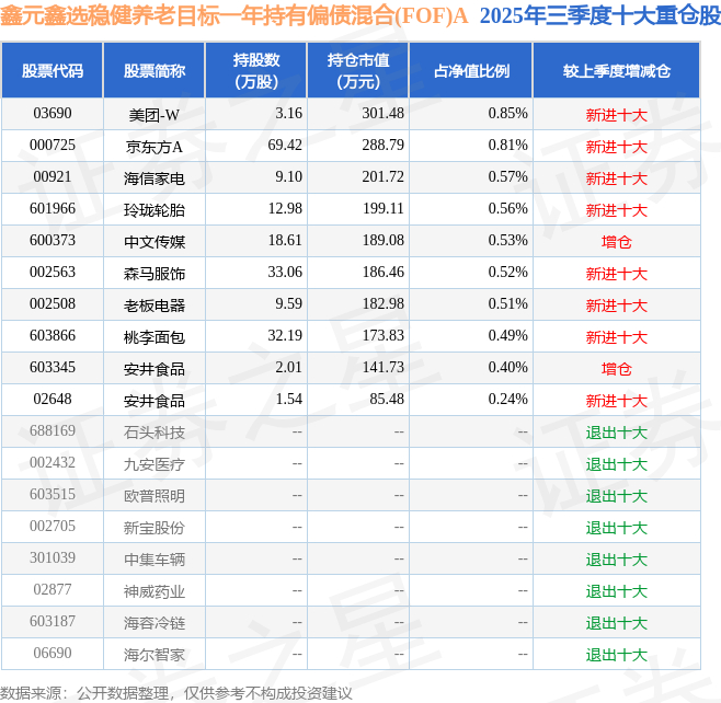 鑫元鑫选稳健养老目标一年持有偏债混合(FOF)A的前十大重仓股如下: