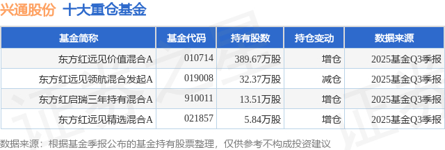 重仓兴通股份的公募基金请见下表: