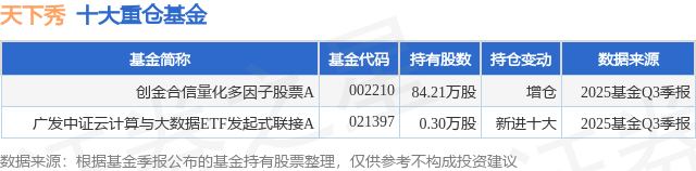 根据2025基金Q3季报公募基金重仓股数据,重仓该股的公募基金共2家,其中持有数量最多的公募基金为创金合信基金的创金合信量化多因子股票A。创金合信量化多因子股票A目前规模为3.75亿元,最新净值1.4809(12月10日),较上一交易日上涨0.39%,近一年上涨29.34%。该公募基金现任基金经理为董梁 黄小虎。董梁在任的基金产品包括:创金合信沪深300指数增强A,管理时间为2018年11月19日至今,期间收益率为92.95%;创金合信中证500指数增强A,管理时间为2019年7月5日至今,期间收益率为82.01%;创金合信中证1000指数增强A,管理时间为2019年7月5日至今,期间收益率为112.44%。黄小虎在任的基金产品包括:创金合信北证50成份指数增强A,管理时间为2023年12月29日至今,期间收益率为53.91%;创金合信量化发现混合A,管理时间为2025年11月19日至今,期间收益率为-0.15%。