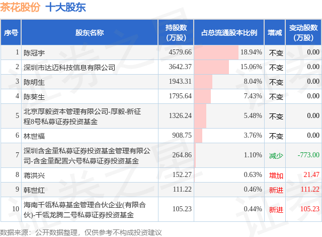 根据茶花股份2025年三季报公布的十大股东详情如下: