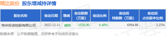 该股近半年内有股东持股变动,合计净减持1030.96万股,股东增减持明细如下表: