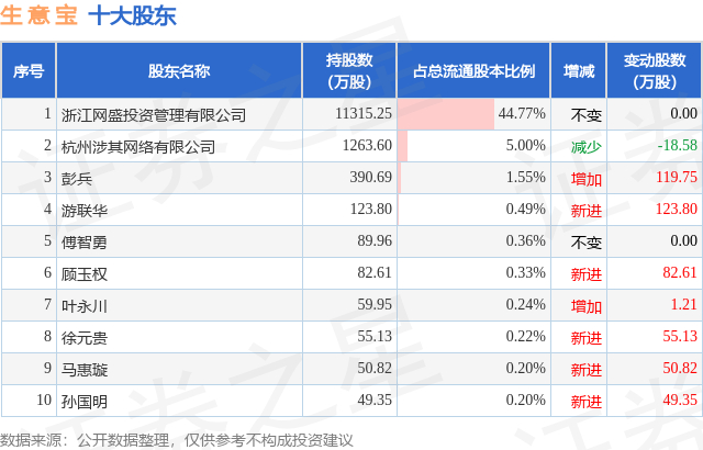 根据生意宝2025年三季报公布的十大股东详情如下: