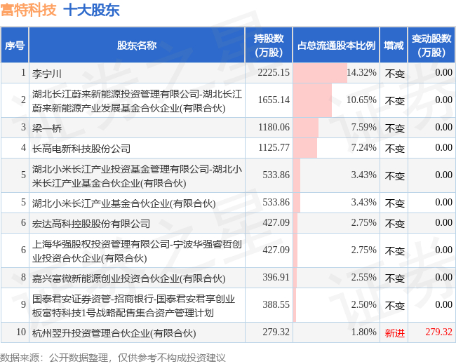 根据富特科技2025年三季报公布的十大股东详情如下: