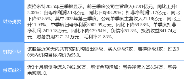 2025年10月31日,东吴证券研究员曾朵红,谢哲栋,许钧赫发布了对麦格米特的研报《2025年三季报点评:业绩不及市场预期,大力布局AI电源业务》,该研报对麦格米特给出“买入”评级。证券之星数据中心根据近三年发布的研报数据计算,该研报作者对此股的盈利预测准确度为56.14%。