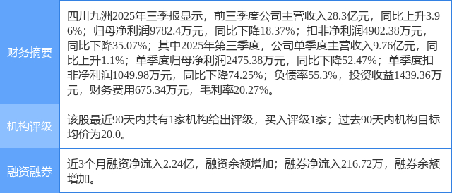 四川九洲(000801)个股概况:
