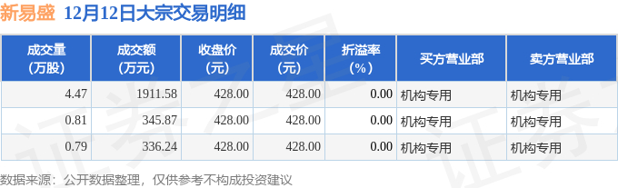 证券之星消息,12月12日新易盛发生大宗交易,交易数据如下:
