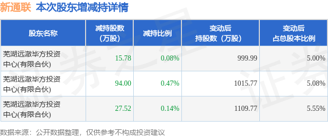 股东增减持详情见下表: