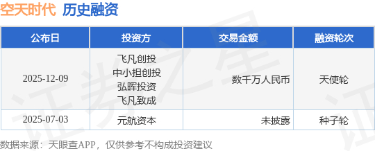 证券之星消息,根据天眼查APP于12月9日公布的信息整理,四川空天时代科技有限公司天使轮融资,融资额数千万人民币,参与投资的机构包括飞凡创投,中小担创投,弘晖投资,飞凡致成。