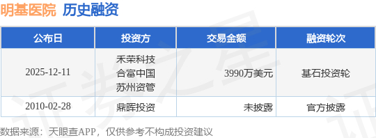 证券之星消息,根据天眼查APP于12月11日公布的信息整理,南京明基医院有限公司基石投资轮融资,融资额3990万美元,参与投资的机构包括禾荣科技,合富中国,苏州资管。