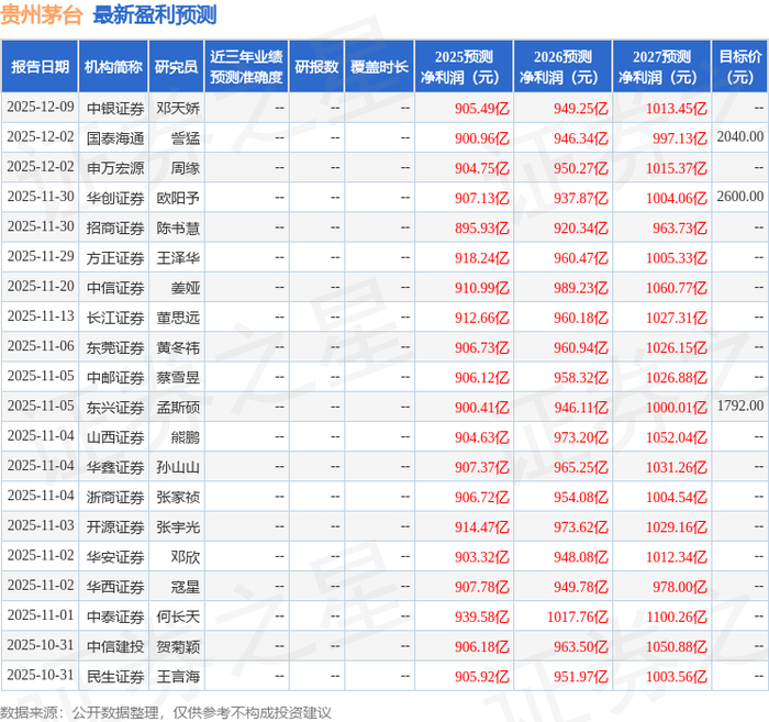 盈利预测与投资评级:短期确定性提升,投资者回报稳定性强。我们认为公司调整方向务实,短期价格体系调整无碍中长期品牌价值提升。复盘白酒2013~14年周期,量的企稳改善会先于价格,股价企稳拐点可首先关注动销反馈,当前茅台价格随行就市,将更有利于基本面尽早筑底企稳。参考2026年公司调整方向,我们调整2025~2027年归母净利预测为902、910、929亿元(前值902、933、970亿元),同比+4.5%、-1.0%、+2.0%,当前市值对应PE为20、20、19x,维持“买入”评级。