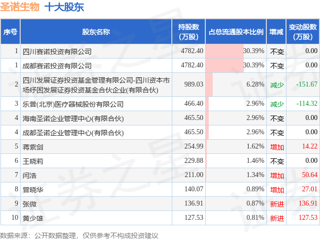 根据圣诺生物2025年三季报公布的十大股东详情如下: