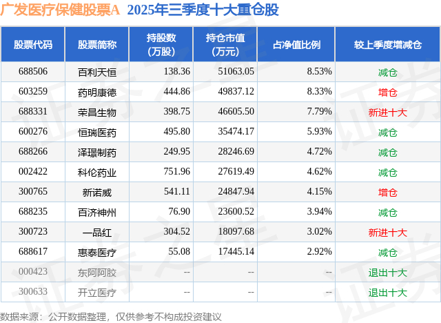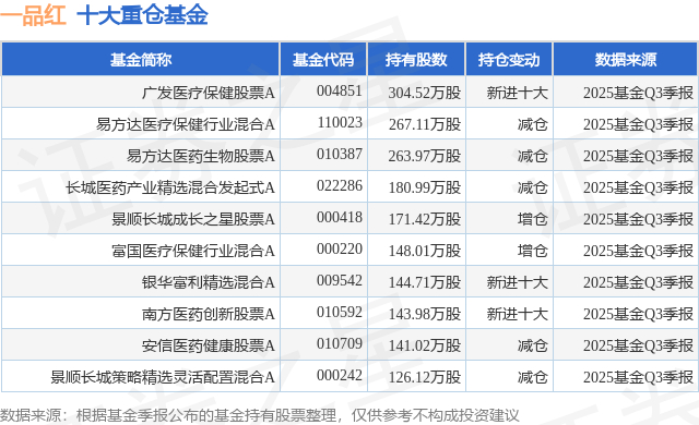 根据2025基金Q3季报公募基金重仓股数据,重仓该股的公募基金共44家,其中持有数量最多的公募基金为广发基金的广发医疗保健股票A。广发医疗保健股票A目前规模为51.85亿元,最新净值1.8782(12月12日),较上一交易日下跌0.32%,近一年上涨10.27%。该公募基金现任基金经理为吴兴武。吴兴武在任的基金产品包括:广发轮动配置混合,管理时间为2015年2月12日至今,期间收益率为80.92%;广发医药健康混合A,管理时间为2020年10月21日至今,期间收益率为-38.77%;广发创新医疗两年持有混合A,管理时间为2021年3月19日至今,期间收益率为-22.76%。