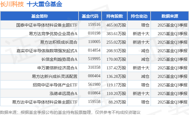 根据2025基金Q3季报公募基金重仓股数据,重仓该股的公募基金共87家,其中持有数量最多的公募基金为国泰基金的国泰中证半导体材料设备主题ETF。国泰中证半导体材料设备主题ETF目前规模为82.99亿元,最新净值1.5262(12月12日),较上一交易日上涨3.78%,近一年上涨39.01%。该公募基金现任基金经理为艾小军。艾小军在任的基金产品包括:国泰金融ETF联接A,管理时间为2014年1月13日至今,期间收益率为173.02%;国泰上证180金融ETF,管理时间为2014年1月13日至今,期间收益率为192.33%;国泰黄金ETF,管理时间为2014年1月13日至今,期间收益率为277.05%;国泰中证计算机主题ETF联接A,管理时间为2015年3月26日至今,期间收益率为-3.1%。