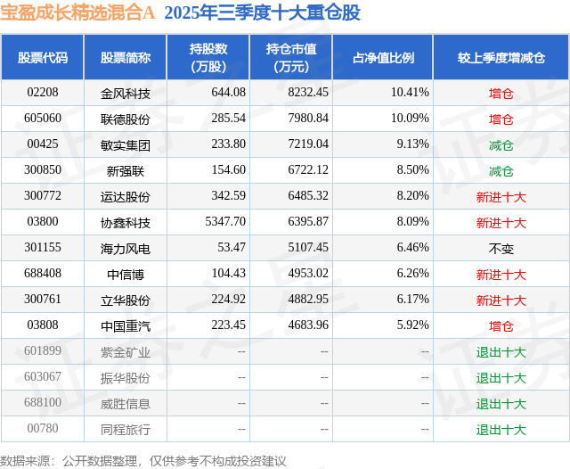 根据2025基金Q3季报公募基金重仓股数据,重仓该股的公募基金共14家,其中持有数量最多的公募基金为宝盈基金的宝盈成长精选混合A。宝盈成长精选混合A目前规模为5.89亿元,最新净值1.0533(12月15日),较上一交易日下跌0.04%,近一年上涨2.0%。该公募基金现任基金经理为李巍宇。李巍宇在任的基金产品包括:宝盈泛沿海增长混合,管理时间为2024年12月24日至今,期间收益率为32.83%;宝盈价值成长混合A,管理时间为2025年8月30日至今,期间收益率为9.49%。