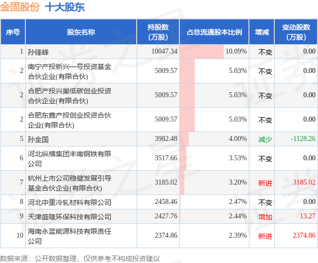 根据金固股份2025年三季报公布的十大股东详情如下: