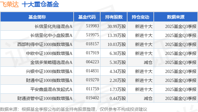 根据2025基金Q3季报公募基金重仓股数据,重仓该股的公募基金共9家,其中持有数量最多的公募基金为长信基金的长信量化先锋混合A。长信量化先锋混合A目前规模为6.31亿元,最新净值1.877(12月16日),较上一交易日下跌1.05%,近一年上涨24.22%。该公募基金现任基金经理为左金保。左金保在任的基金产品包括:长信量化中小盘股票A,管理时间为2015年3月13日至今,期间收益率为139.8%;长信电子信息量化灵活配置混合A,管理时间为2016年7月27日至今,期间收益率为61.5%;长信量化多策略股票A,管理时间为2018年8月30日至今,期间收益率为81.76%。