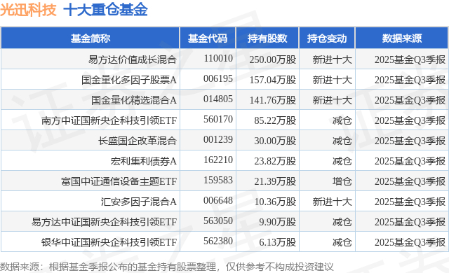 重仓光迅科技的前十大公募基金请见下表: