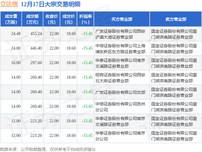 证券之星消息,12月17日立达信发生大宗交易,交易数据如下: