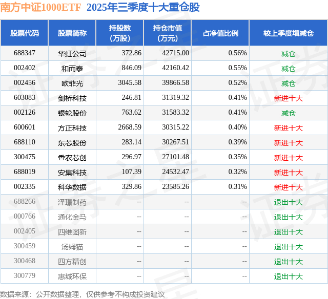 根据2025基金Q3季报公募基金重仓股数据,重仓该股的公募基金共42家,其中持有数量最多的公募基金为南方基金的南方中证1000ETF。南方中证1000ETF目前规模为766.3亿元,最新净值2.9547(12月17日),较上一交易日上涨1.49%,近一年上涨20.23%。该公募基金现任基金经理为崔蕾。崔蕾在任的基金产品包括:南方中证申万有色金属ETF发起联接A,管理时间为2019年7月12日至今,期间收益率为164.31%;南方中证申万有色金属ETF,管理时间为2019年7月12日至今,期间收益率为173.73%;南方红利低波50ETF,管理时间为2020年1月17日至今,期间收益率为93.75%。