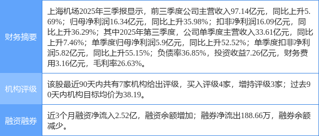 2025年11月2日,国金证券研究员郑树明,王凯婕发布了对上海机场的研报《收入增长成本刚性,Q3业绩大增》,该研报对上海机场给出“买入”评级。证券之星数据中心根据近三年发布的研报数据计算,该研报作者对此股的盈利预测准确度为52.83%。