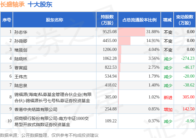 根据长盛轴承2025年三季报公布的十大股东详情如下: