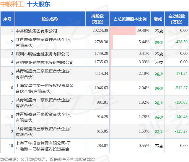 证券之星消息,12月25日中粮科工发布公告《中粮科工:关于持股5%以上股东及其一致行动人权益变动触及1%整数倍的公告》,其股东共青城盛良一豪投资合伙企业(有限合伙)、共青城盛良投资管理合伙企业(有限合伙)、共青城盛良三豪投资合伙企业(有限合伙)、共青城盛良二豪投资合伙企业(有限合伙)、共青城盛良四豪投资合伙企业(有限合伙)于2025年12月24日合计减持396.0万股,占公司目前总股本的0.7729%,变动期间该股股价上涨0.83%,截止12月24日收盘报10.96元。