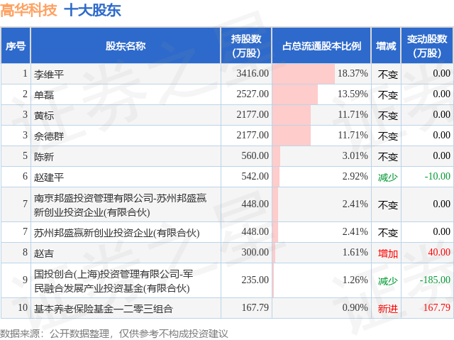 根据高华科技2025年三季报公布的十大股东详情如下: