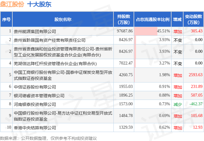 根据盘江股份2025年三季报公布的十大股东详情如下: