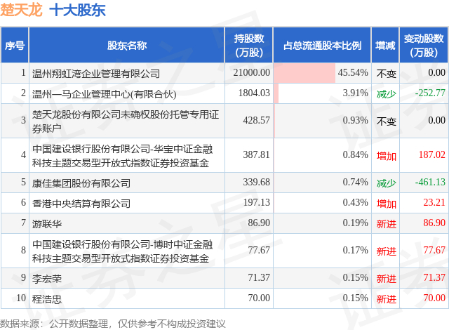 根据楚天龙2025年三季报公布的十大股东详情如下: