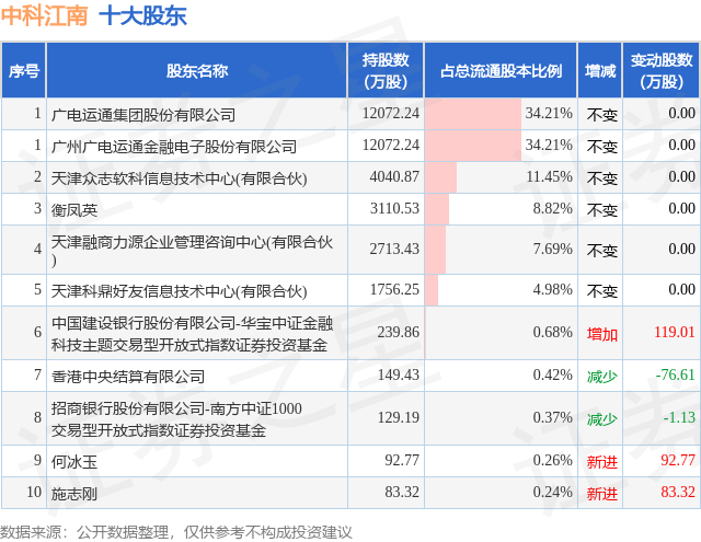 根据中科江南2025年三季报公布的十大股东详情如下: